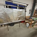 Dann befestige ich die Alu-Folie auf einer Rahmenseite. Die Folie befestige ich mit Klammern. Das passiert auf einer neuen Schablone.